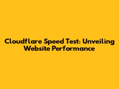 Cloudflare Speed Test: Boost Your Website's Performance