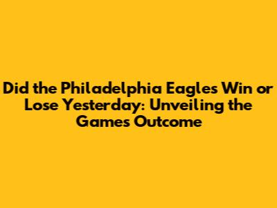 Hey Eagles fans, are you ready to dive into the latest game results? We all know the thrill of game day, the nail-biting moments, and the sheer joy (or disappointment) that comes with the final score. So, did the Philadelphia Eagles win or lose yesterday? Let's break it down and get you all the juicy details. Get ready for a deep dive into the recent Eagles game, covering everything from the final score to key plays, player performances, and what it all means for the team's season. We're talking touchdowns, interceptions, amazing catches, and those heart-stopping moments that make us love (and sometimes hate) the game. Let's not waste any more time, let’s get right into it, shall we?
