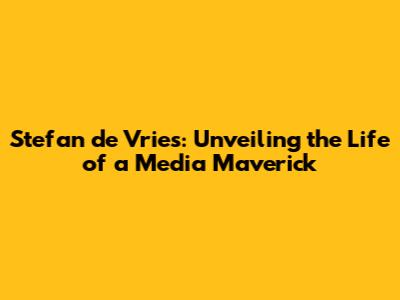 Stefan De Vries: Unveiling The Life Of A Media Maverick