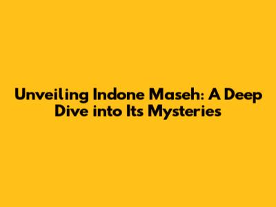 Unveiling Indone Maseh: A Deep Dive Into Its Mysteries