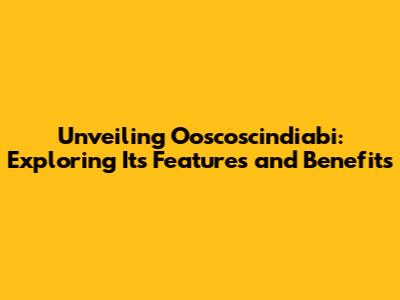 Unveiling Ooscoscindiabi: Exploring Its Features And Benefits