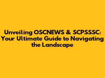 Unveiling OSCNEWS & SCPSSSC: Your Guide