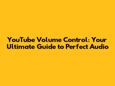 YouTube Volume Control: Your Ultimate Guide To Perfect Audio