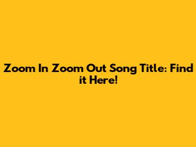 Hey guys! Ever found yourself humming a catchy tune but just can't seem to remember the title? We've all been there, right? Today, we're diving deep into the world of the "Zoom In Zoom Out" song. This track has been stuck in so many heads, and for good reason. It’s infectious, fun, and perfect for a good time. Let's get into everything you need to know about this banger, from its origins to why it’s so darn popular.